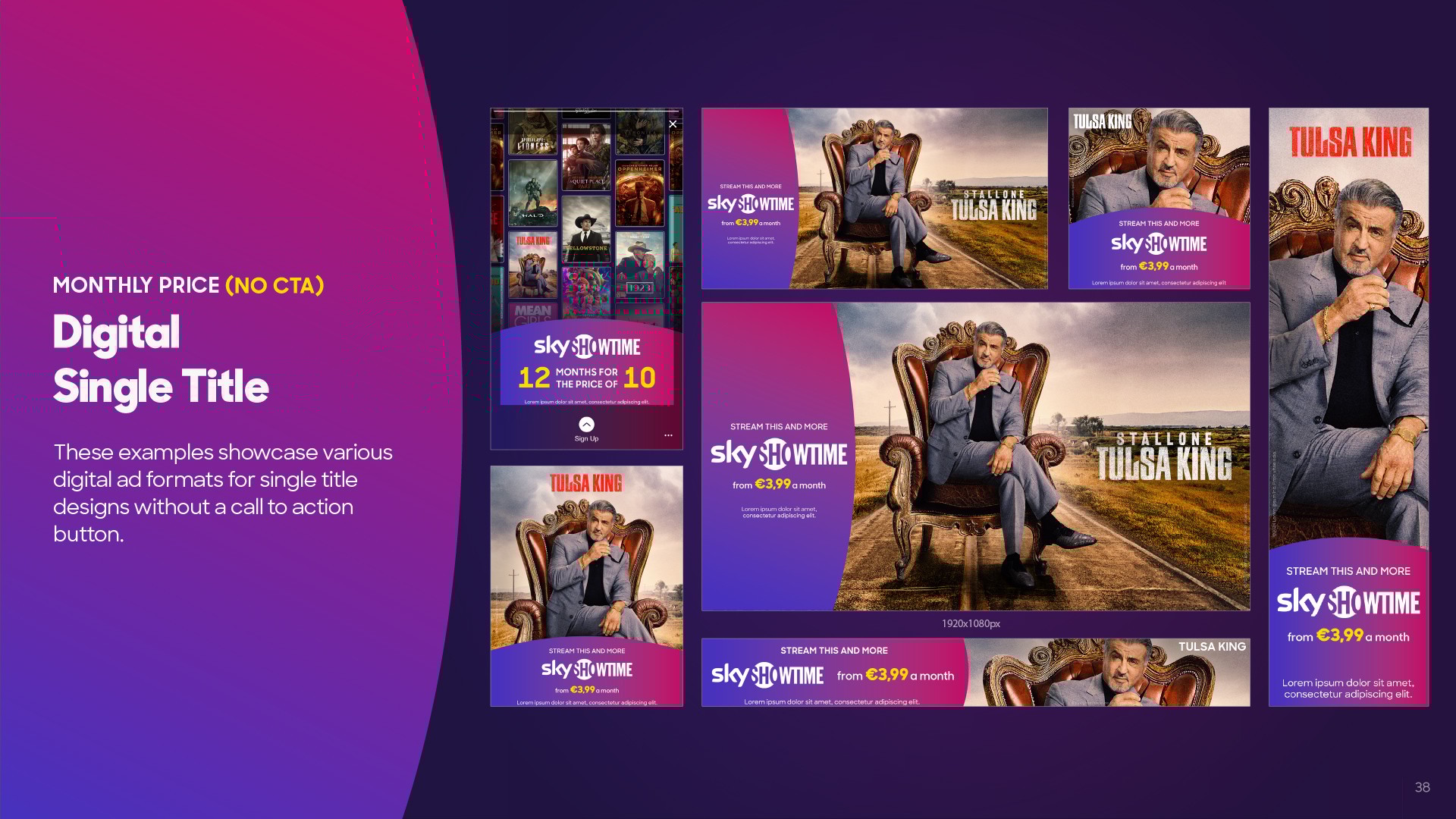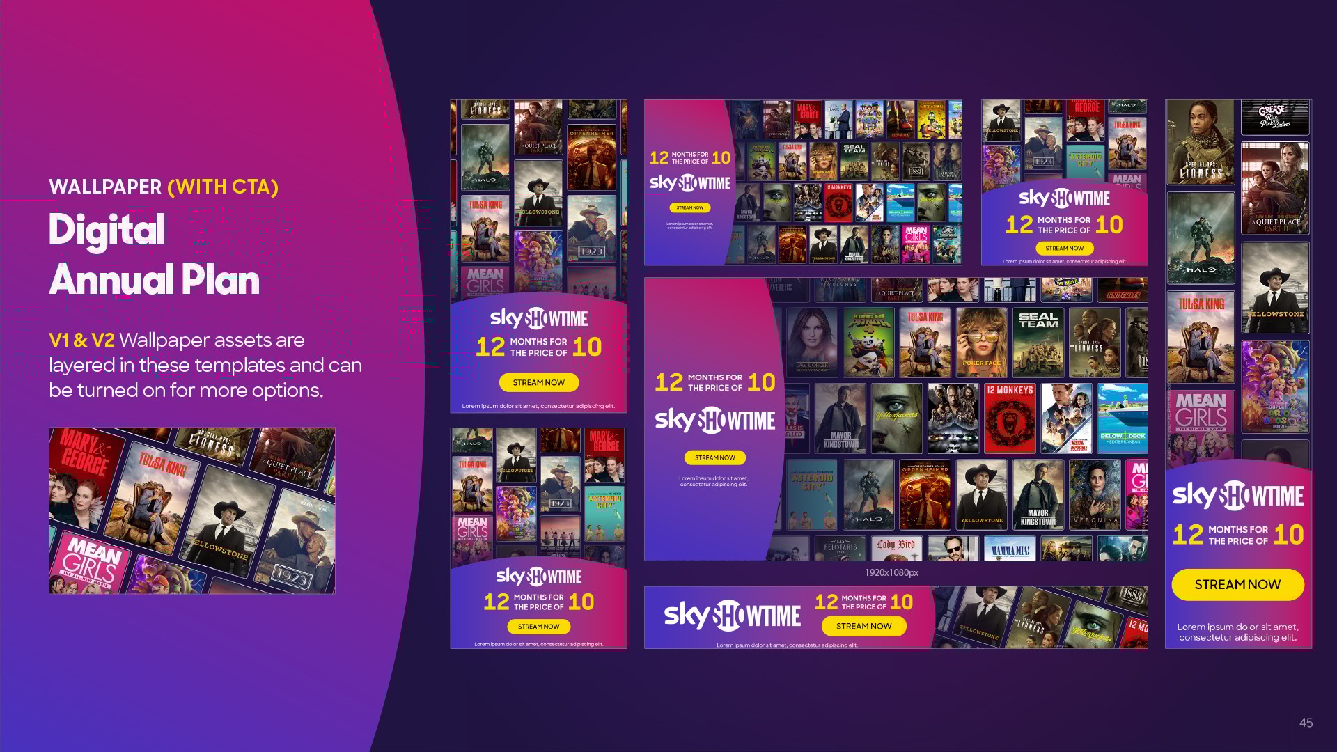 As Brand Design Manager at SkyShowtime, I translated the results of many engaging workshops led by the in-house Brand & Marketing teams into a comprehensive visual identity, addressing the rapidly changing demands of the brand’s evolution. Reducing brand elements such as the color palette, logos, and fonts, streamlining voice and tone, defining motion behaviours, and establishing rules for brand consistency were all part of the effort to empower the brand with a bolder approach and straightforward communication in every market after two years post-launch. Working alongside with Blacklist Creative Agency was key to expanding and implementing the rebrand across all touch-points, including print, digital, social, paid, AV, and ECRM.